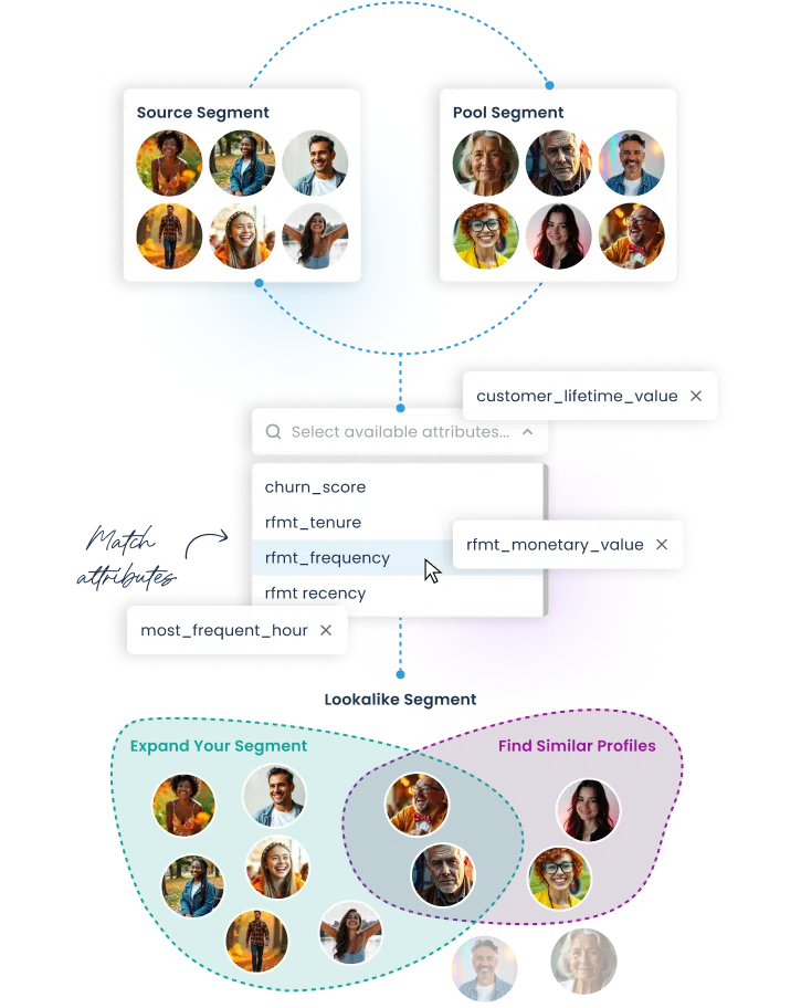 Lookalike segmentation is a sophisticated yet simple tool that allows you to identify and target new users who share similar characteristics with your existing customer base or a specific target group.