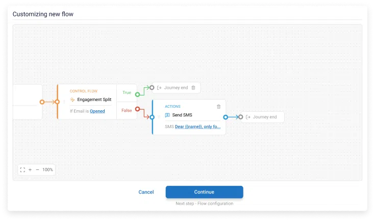 Personalized experiences. Customize every step of your customer’s journey to increase conversion rates. Automation Studio allows you to send unique messages and offers based on each user’s actions, ensuring they receive exactly what they need at the right time. From welcoming new subscribers with discounts to reminding customers about abandoned carts, you can create a flow for every scenario.