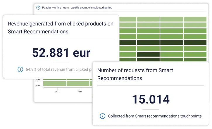 Personalizovane preporuke predlažu stavke koje se odnose na ono što su kupci već dodali u svoje korpe. Ovaj pristup podstiče dodatne kupovine, povećava prosečnu vrednost porudžbine i poboljšava iskustvo kupovine.