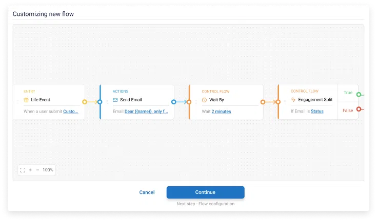 Design a unique flow that will follow every customer through their journey with appropriate responses and actions. After a finished purchase, your job is not done. In a way, it's just the beginning.